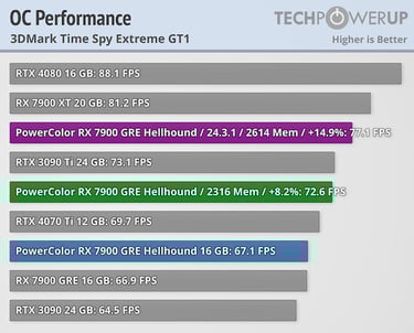 Selon le site TechPowerUp, cela porte le potentiel d'overclocking total de la carte à une impressionnante augmentation de performances réelles de 15 % !