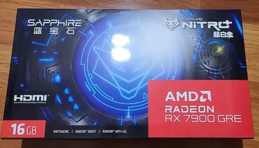 D'après une photo de la boîte Sapphire, elle embarquera sûrement 16 Go de mémoire GDDR6 et très probablement un bus de 256 bits. On pourrait penser que le GRE carbure au GPU phare Navi 31, avec ses 5376 shaders, mais avec deux de ses six contrôleurs mémoire désactivés.