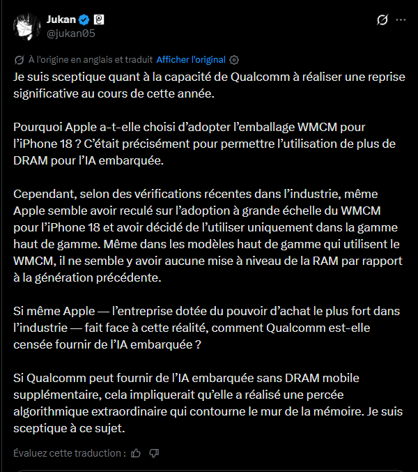 Ce choix illustre surtout une tendance plus large : même les plus grands acteurs du secteur doivent aujourd’hui composer avec les contraintes du marché des semi-conducteurs, en particulier sur la mémoire !