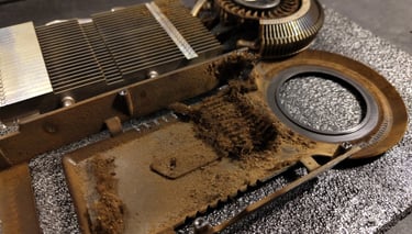Le vidéaste, connu sous le nom de Madness727, a démonté la carte pour un nettoyage complet. Quand il a ouvert la carte, le constat était sans appel : radiateur bouché, poussière collée au goudron, PCB jauni et odeur de tabac omniprésente.