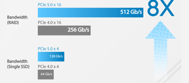 En effet, selon les informations trouvées sur la page produit d'ASUS, cette solution de stockage peut gérer jusqu'à 512 Gbit/s (64 Go/s) de bande passante en mode RAID0. Cette carte permet d'exploiter quatre SSD M.2 en PCIe 5.0 x4 à leur vitesse maximale. Mais pour atteindre cette vitesse, les fabricants de stockage devront produire des dispositifs Gen5 avec des vitesses de lecture allant jusqu'à 16 Go/s, ce qui n'est pas encore disponible sur le marché. Actuellement, les modèles les plus rapides, tels que le Crucial T700, atteignent jusqu'à 12,8 Go/s. Des modèles encore plus performants avec des débits annoncés de 14 Go/s sont déjà en cours de développement, ce qui pourrait permettre d'atteindre un débit total de 56 Go/s.