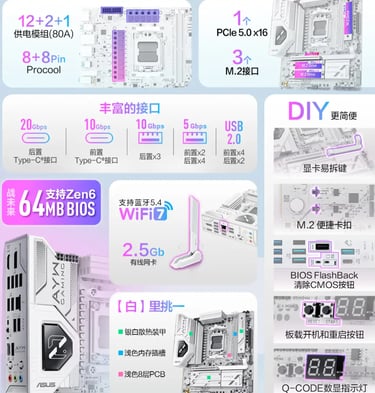 ASUS confirme officiellement la compatibilité de sa B850M AYW OC avec les futurs Ryzen Zen 6, grâce à un BIOS 64 Mo et un support DDR5 à plus de 10 000 MT/s.