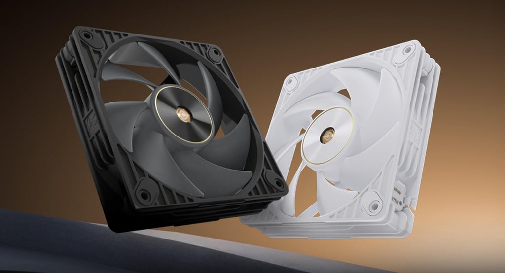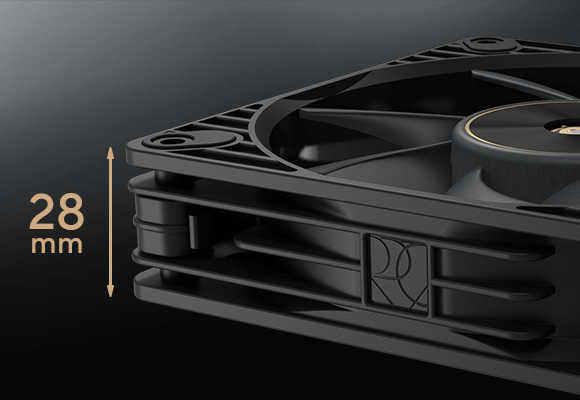 Le ventilateur adopte un châssis plus épais que la moyenne, avec 28 mm, ce qui permet d’optimiser la circulation de l’air tout en conservant un niveau sonore maîtrisé. À pleine vitesse, il peut atteindre 3000 tours par minute, pour un débit d’air annoncé de 104,8 CFM et une pression statique de 7,3 mmH2O, des valeurs adaptées aux radiateurs d’AIO ou aux configurations nécessitant une forte ventilation.