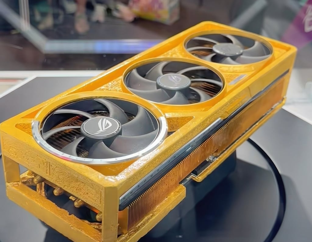 Ce modèle hors norme a été présenté lors du salon Bilibili World 2025, avec des photos partagées par @realVictor sur X. Il ne s'agit pas ici d'une édition limitée avec quelques grammes d’or, comme la ROG Astral Dhahab Edition destinée au marché du Moyen-Orient (6,5 g d’or), mais bien d’un modèle recouvert d’or véritable.
