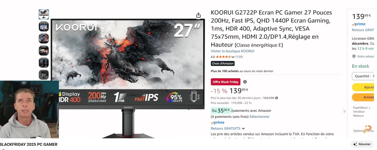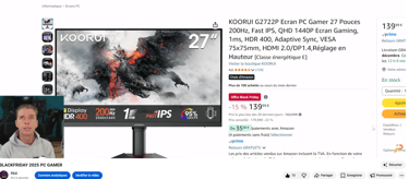 Pour les plus petits budgets, Pax pointe un 27 pouces 1440p 200 Hz Fast IPS à 139 € (-15 %). Pas d’OLED ici, mais un rapport qualité-prix imbattable pour une config milieu de gamme.