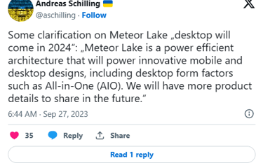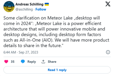 Le premier article indiquait qu'Intel avait précisé que les processeurs Meteor Lake ne seraient pas disponibles sur des plates-formes à socket, notamment le LGA 1851, et que leur orientation principale serait plutôt vers les ordinateurs portables, notamment les tout-en-un (AIO) et les Mini-PCs. Cependant, une déclaration antérieure laissait entendre une disponibilité en 2024 pour les ordinateurs de bureau.