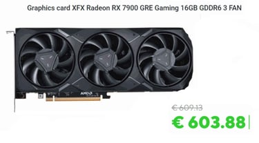 Les joueurs européens intéressés par les cartes graphiques de bureau RDNA3 (troisième génération de l'architecture de processeurs graphiques Radeon DNA) pourraient être tentés d'attendre la belle baisse de prix de la 7900 GRE, qui devrait prochainement descendre en dessous de 600 euros !