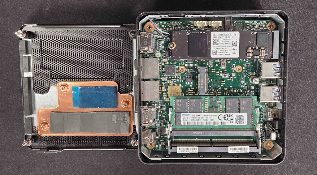 Côté connectique, le Cubi NUC AI reste particulièrement complet pour sa taille. Il peut gérer jusqu’à quatre écrans simultanément via ses ports HDMI et Thunderbolt 4, ce qui permet de mettre en place un environnement multi-écrans efficace. À cela s’ajoutent deux ports réseau 2,5G, offrant une connexion plus rapide et plus stable, ainsi que le Wi-Fi 6E et le Bluetooth 5.3.