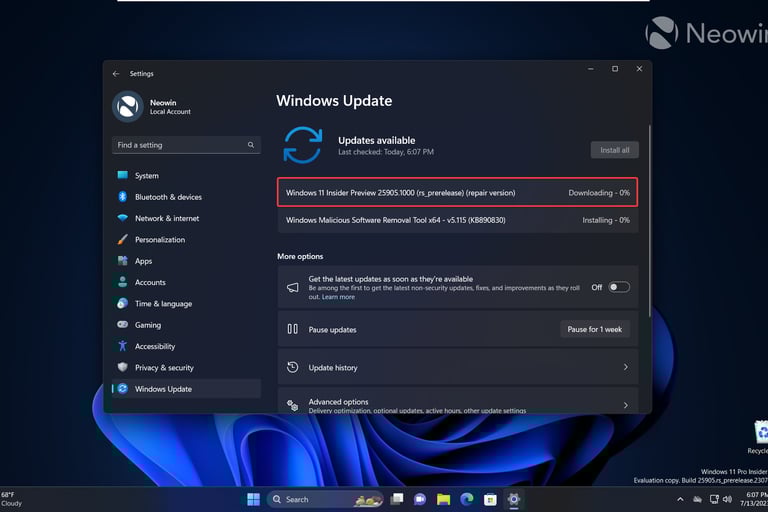 Windows 11 version 25905 vous permet désormais de réparer votre système via Windows Update