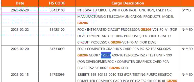 Des manifestes d’expédition confirment les spécifications des futures RTX 5060 et 5060 Ti.