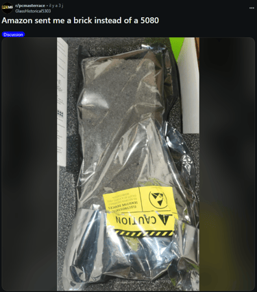 Il commande une RTX 5080 sur Amazon… et reçoit une brique