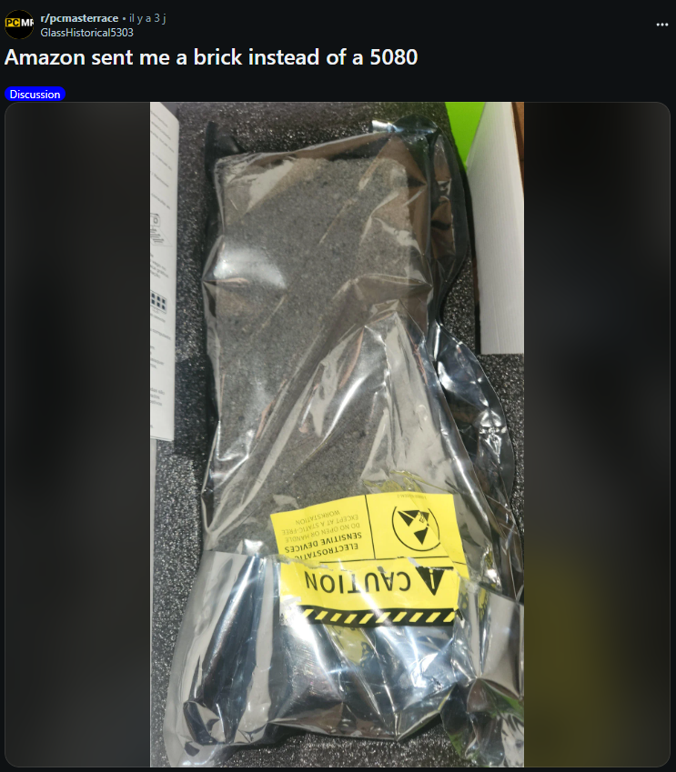 Il commande une RTX 5080 sur Amazon… et reçoit une brique !