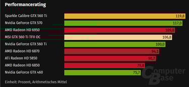 Dans le test de l’époque, la carte était environ 20 % plus rapide que la GTX 560 Ti standard. En revanche, la consommation du système montait à 419 W en charge, contre 356 W avec la carte de référence.