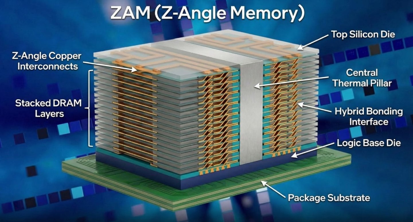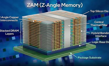 Contrairement à la HBM ou aux DRAM classiques, ZAM utilise une topologie diagonale au lieu d’un empilement vertical. Cette structure permettrait d’optimiser la dissipation thermique tout en augmentant la performance.