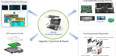 Aujourd’hui, les PC représentent 70 % des e-déchets, soit plus de 60 millions de tonnes par an, avec seulement 12 % recyclés. Face à ce constat, Intel fait une proposition d'une architecture modulaire qui faciliterait la réparabilité et l’évolutivité des composants, évitant ainsi de devoir remplacer des machines entières.