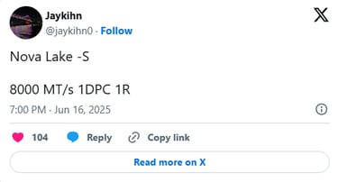Selon le leaker, la prochaine gen proposer un gros bond en termes de compatibilité mémoire, avec la gestion native de la DDR5-8000 (en configuration 1 barrette par canal et simple rangée). Un net progrès comparé à la DDR5-6400 actuelle !