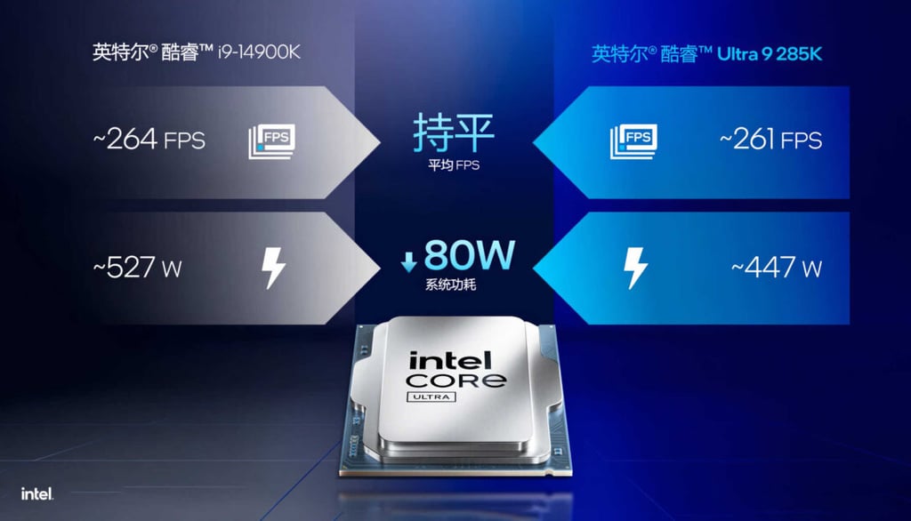 Intel admet que son processeur Core Ultra 9 285K ne surpassera pas le i9-14900K en matière de gaming, mais il consommera moins d'énergie.