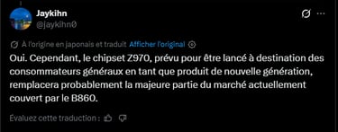 Enfin, le Z970 pourrait également jouer un rôle stratégique face à la concurrence, en venant se positionner face aux futurs chipsets milieu de gamme d’AMD, comme les B950, sur le segment dit “mainstream premium”.