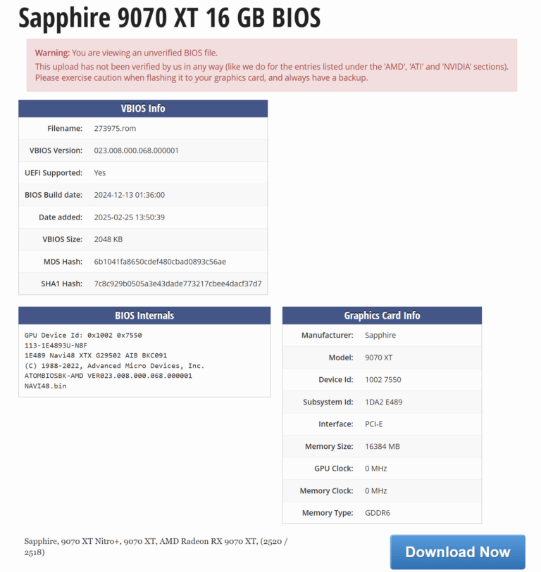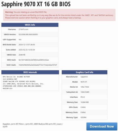 Une fuite du BIOS de la Sapphire Radeon RX 9070 XT NITRO+ confirme l’utilisation du GPU Navi 48 XTX.