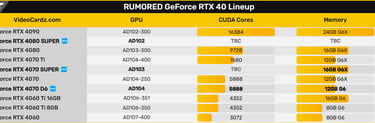Selon les rumeurs, NVIDIA prévoit la GeForce RTX 4070 SUPER avec 16 Go de VRAM et une interface bus de 256 bits pour 2024