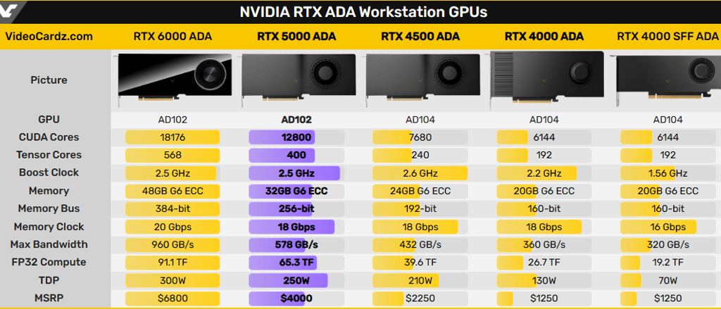 En août dernier, NVIDIA avait annoncé des mises à jour pour sa série RTX ADA, introduisant les nouveaux modèles RTX 5000 ainsi que les RTX 4500/4000.