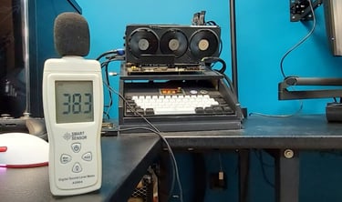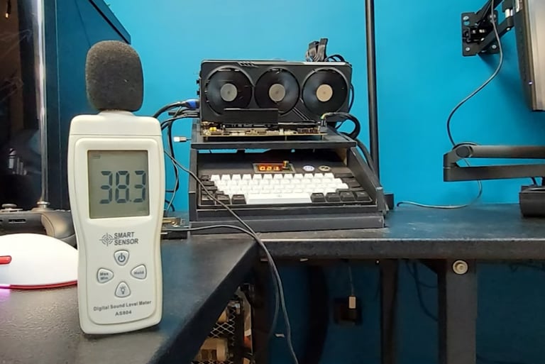 L'Atelier a mesuré un volume sonore de 38,3 db à 1 mètre de la carte graphique après 1h de jeu.