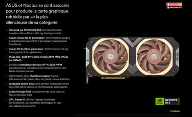 Cette ASUS GeForce RTX 4080 Noctua OC résulte de la collaboration exclusive entre l'expertise d'Asus en matière de cartes graphiques et la technologie de Noctua, présentant ainsi une nouvelle RTX 40.