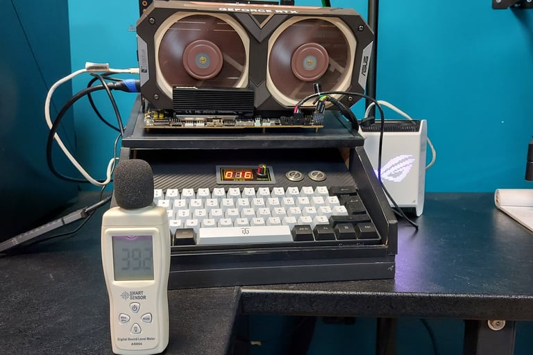 Nous avons testé la carte en bench sur 1h et nous avons obtenu un résultat avec une moyenne de 39 Db. La sonde était située à 40 cm de la carte graphique.