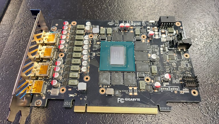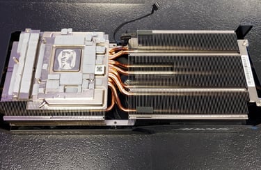 La carte est composée d'un circuit de refroidissement haut de gamme avec chambre à vapeur et caloducs full cuivre. Au sujet de la pâte et des pads thermiques, ils sont de bonne facture, comme toujours chez GIGABYTE.