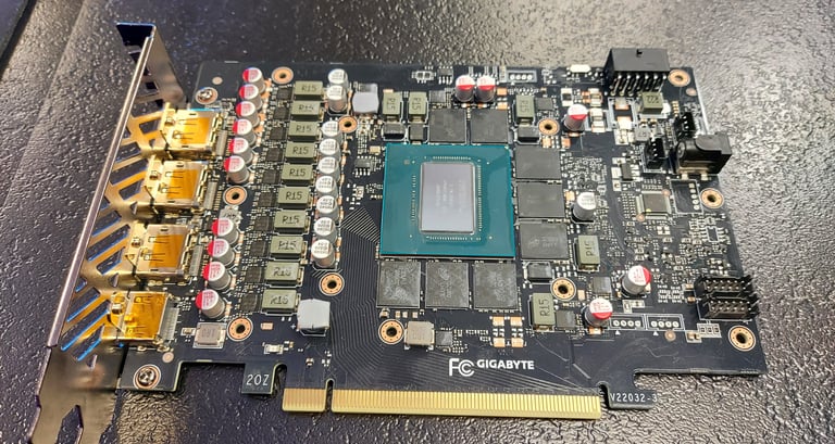 La qualité du PCB (circuit imprimé) démontre encore une fois une très bonne maîtrise de GIGABYTE dans la construction de leur carte. Ils font partie des rares fabricants à vernir leur cartes, ce qui garantit une plus grand protection à la poussière ainsi qu'aux accidents dus au watercooling. L'Atelier a constaté aussi une très bonne qualité d'assemblage des composants et de leur soudure.