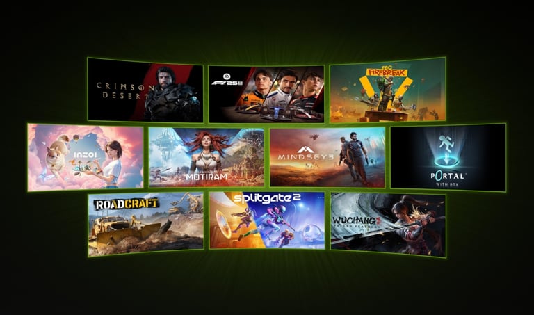 Dans le cadre de ses annonces de jeux lors de l'événement, NVIDIA a annoncé que 10 nouveaux jeux à venir intégreront le support de DLSS 4, soit de manière native, soit via la fonctionnalité DLSS Override dans l’application NVIDIA. Cela inclut F1 25, qui sort ce mois-ci, Crimson Desert, Splitgate 2, FBC Firebreak et la mise à jour Portal avec RTX.