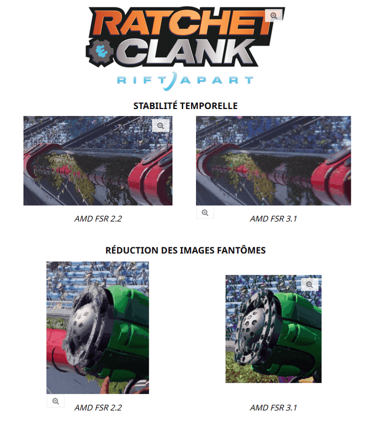 AMD avance dans le développement de sa technologie de suréchantillonnage de 3è génération ! La version actuelle, le FSR3, est en cours de mise à niveau vers la version 3.1 et devrait être disponible pour les développeurs de jeux dès le deuxième trimestre 2024. C'est ce qui a été révélé lors de la GDC et les améliorations ont été montrées sur le jeu "Ratchet & Clank : Rift Apart", qui devrait être l'un des premiers jeux à adopter le FSR 3.1.
