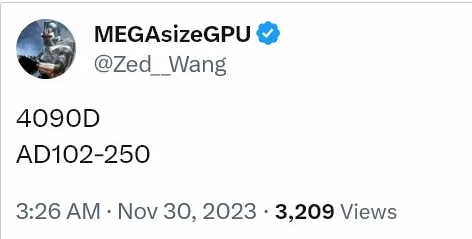 Des récentes révélations sur X (anciennement Twitter) par l'informateur bien connu MEGAsizeGPU ont confirmé que la RTX 4090 D serait alimentée par la puce AD102-250. Cette puce diffère de celle utilisée dans la GeForce RTX 4090 actuelle, qui utilise la puce AD102-300.