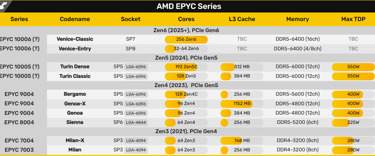 Les fuites sur les processeusr AMD EPYC 5è gen avec jusqu'à 192 cœurs Zen5 en images !