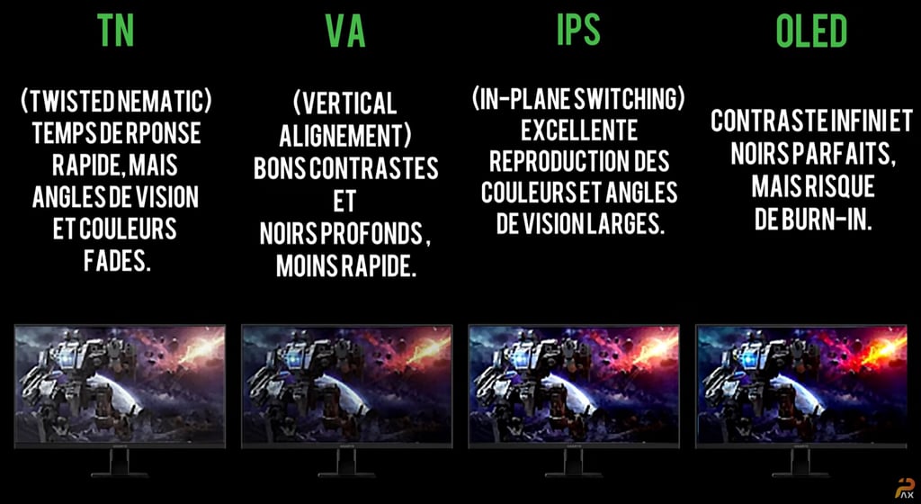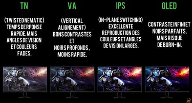 -> IPS : excellent compromis avec de belles couleurs et de larges angles de vision.