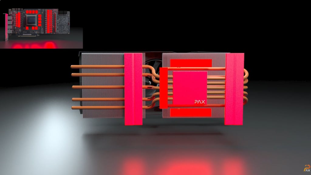 Quand la carte graphique est sous tension, le courant est distribué par les étages d’alimentation, les fameux VRM. Ces composants chauffent, tout comme le GPU et la VRAM. Il faut donc dissiper cette chaleur efficacement.