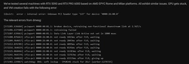 Les RTX 5090 et PRO 6000 n’aiment pas les longues sessions en VM !