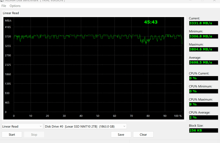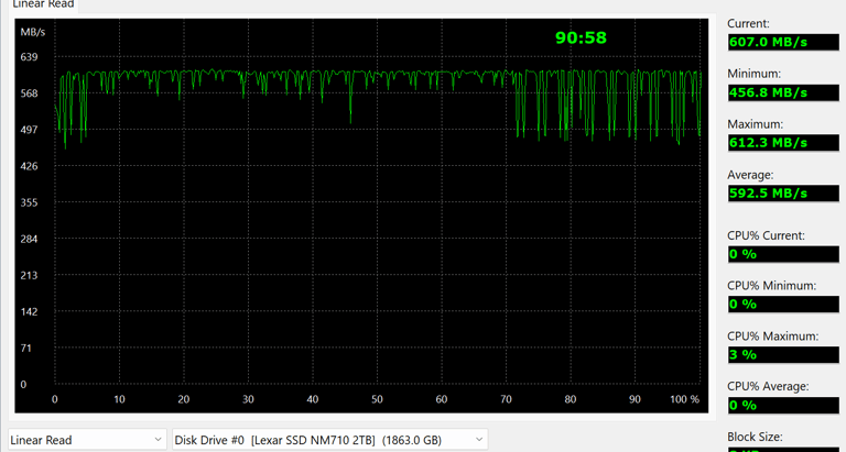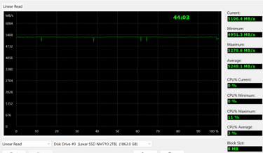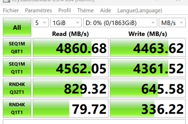 Il est à noter que le SSD ne vient pas avec un dissipateur thermique intégré mais au vu du prix c’est tout-à-fait normal, ce qui pourrait être un point à noter pour certains utilisateurs, surtout ceux qui cherchent à maximiser les performances. Lors des tests, nous avons constaté les limites comme toutes les autres marques d’ailleurs. Donc nous vous conseillons une carte mère incluant un dissipateur thermique ou un dissipateur à part pour des charges de travail professionnel. Avec des vitesses de lecture et d'écriture séquentielles allant jusqu'à 5000 Mo/s et 4500 Mo/s respectivement, en test à l'atelier la lecture est mesurée à 4800 Mo/S, il est clairement conçu pour les tâches gourmandes en ressources. Les tests ont également montré que le SSD est capable de maintenir ces vitesses même sous des charges d'écriture élevées, ce qui est un grand plus. Cependant, il est donc recommandé d'utiliser un dissipateur thermique externe, car le SSD peut atteindre des températures assez élevées sous charge, ce qui entraîne un throttling des performances, nous avons pu le constater, sur du transfert vidéo de 400go. Mais comme déjà évoqué, ce sera le cas avec les autres marques aussi, et cela avec un finesse de gravure revue à la baisse du côté Lexar.