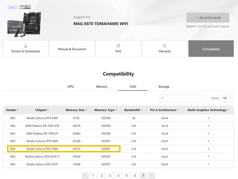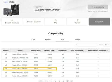 Décidément, MSI sème le doute. Après avoir déjà montré une RTX 5080 avec 24 Go de VRAM dans une vidéo promotionnelle, la marque récidive, cette fois dans une fiche de compatibilité pour ses cartes mères X870. Or, NVIDIA n’a jamais annoncé officiellement une telle configuration pour la RTX 5080.