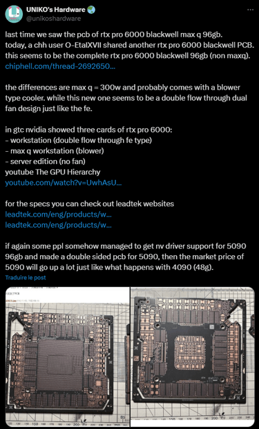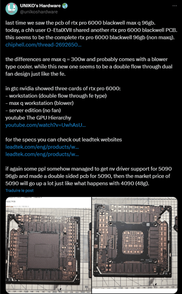 La fuite d’un PCB pro à 96 Go relance les spéculations : NVIDIA pourrait bien préparer une RTX 5090 SUPER