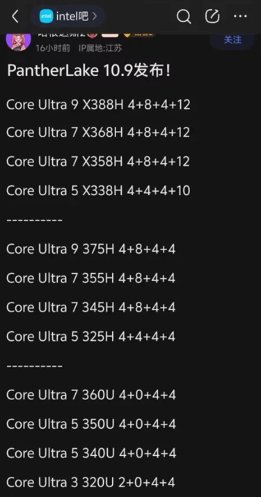 Une fuite dévoile la première vague de CPU Panther Lake : 12 modèles au total, dont les versions “X” haut de gamme avec jusqu’à 12 cœurs Xe3 GPU.