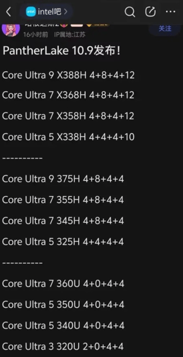 Une nouvelle fuite détaille la future gamme Intel Panther Lake, qui compterait 12 modèles au total !