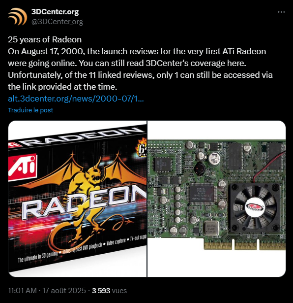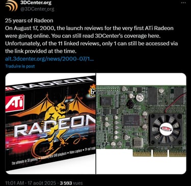 Il y a 25 ans, la toute première carte ATI Radeon était testée, marquant le début d’une lignée devenue incontournable dans le monde du GPU !