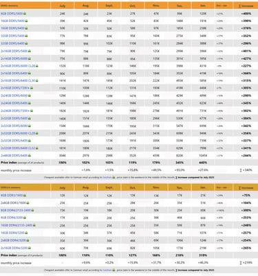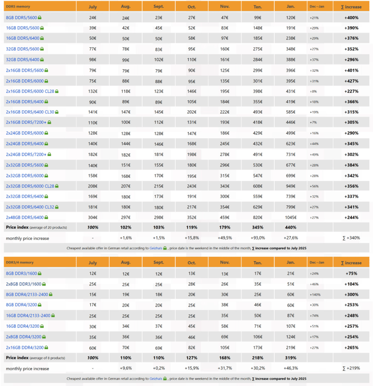 Les prix de la DDR5 en Allemagne atteignent 4,4 fois leur niveau de juillet 2025,