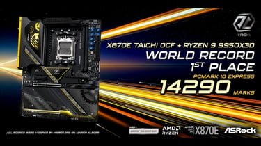 La carte mère ASRock X870E Taichi OCF, conçue pour l’overclocking extrême sur la plateforme AM5 d’AMD, vient de participer à l’établissement d’un nouveau record mondial CPU !