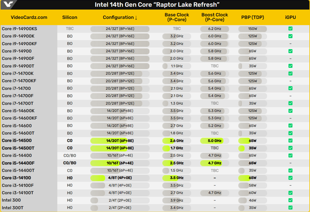 On retrouve sur Internet des processeurs Intel Core de 14e génération non officiellement lancés, tels que le Core i3-14100 et le Core i5-14500T !
