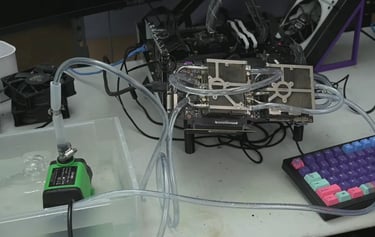 Après avoir démonté le radiateur de la carte, il a coupé les extrémités des caloducs — normalement remplis d’un fluide permettant un refroidissement par changement de phase — puis a fixé des tubes en silicone à leur place.