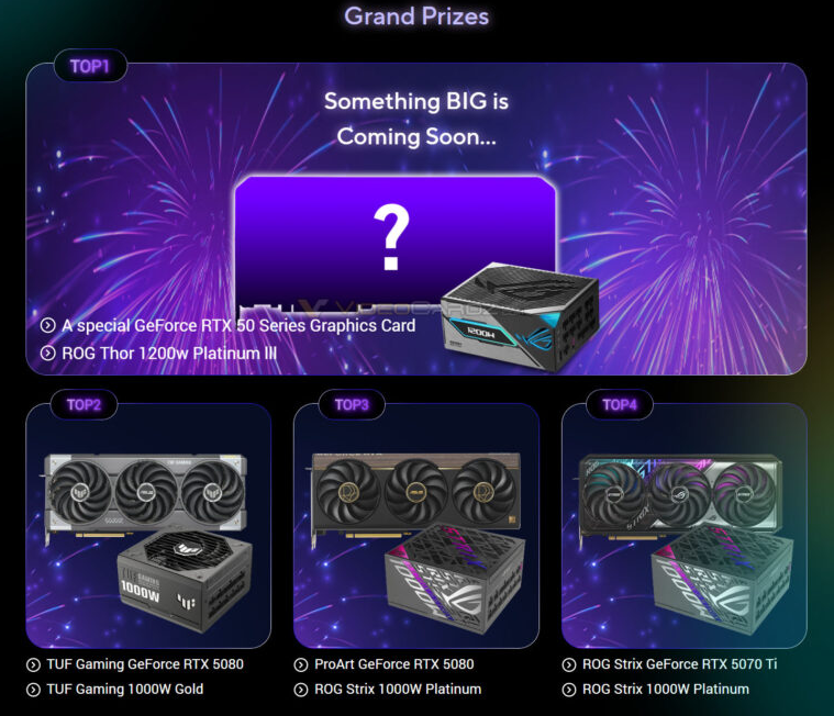 Cette mystérieuse carte, montrée uniquement en silhouette pour l’instant, sera aussi le grand prix d’un concours organisé par ASUS. Elle serait livrée avec une alimentation THOR 1200W, ce qui correspond parfaitement au profil d’une RTX 5090. Certains pensent qu’il pourrait s’agir d’un retour de la gamme ROG Matrix, comme avec la 4090 Platinum de l’an dernier. Ce type d’édition spéciale ne sort pas à chaque génération, ce qui rend cette sortie d’autant plus attendue.