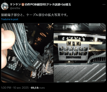 Il est aussi bon de rappeler que la GX-750 utilisée ici est une alimentation de dernière génération, dotée d’un connecteur natif 12V-2×6. On ne sait pas encore si le problème vient d’un défaut de fabrication ou d’un mauvais branchement, mais la situation souligne une nouvelle fois à quel point la qualité des connectiques et leur bon enfichage est crucial.