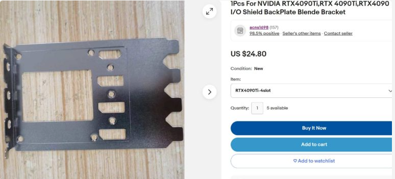 Bien que la RXT 4090 Ti n'ait jamais été commercialisée, on peut trouver un support I/0 à quatre emplacements pour cette carte sur Ebay !